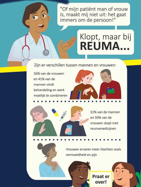 Mannen en vrouwen met reuma ervaren hun ziekte en de behandeling ervan heel verschillend. Aspecten waarin zij verschillen zijn bijvoorbeeld: ervaren klachten, last hebben van bijwerkingen van medicijnen, behandelvoorkeuren, inpassing van ziekte en behandeling in het dagelijks leven en wensen ten aanzien van informatie en ondersteuning.