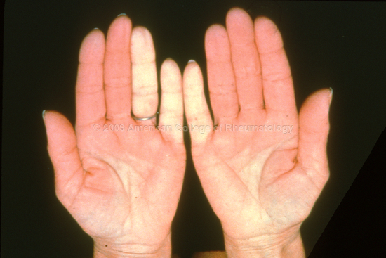 Een bekend kenmerk bij systeemziekten is het fenomeen van Raynaud. Typisch zijn het aanvalsgewijze verkleuringen van de vingers in de koude of bij sterke emoties. Eerst worden de vingers wit en daarna meestal blauw en rood. Dit kan ook optreden zonder onderliggende systeemziekte, dan begint het van jongs af aan. Wanneer het asymmetrisch aanwezig is, het op oudere leeftijd begint of bij mannen voorkomt, dan moet men denken aan een onderliggende ziekte. Wat kan je aan het fenomeen van Raynaud doen? Zo mogelijk de uitlokkende factoren koude en sterke emoties vermijden, daarnaast stoppen met roken, het gehele lichaam warm aankleden en het dragen van handschoenen, eventueel zilverhandschoenen.